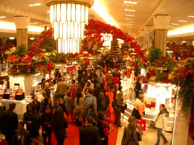 am black friday, dem tag nach thanksgiving nach manhattan zu fahren -das muß man wirklich wollen. sonst dreht man durch, sobald man sich den großen kaufhäusern nähert. hier bei macys herrscht tatsächlich der ausnahmezustand. die polizei hat ein mobiles hauptquartier direkt vor dem haupteingang geparkt und die kollegen versuchen, dem strom der menschen herr zu werden, die die straßen rund um das kaufhaus fast zu fußgängerzonen machen. nach einem ganzen tag verkehr regeln oder nach sonderangeboten jagen oder taxifahren sehen alle leute völlig erschöpft aus und scheinen am rande des nervenzusammenbruchs zu balancieren. die kinder, die das glück haben, in kinderwagen durchs gedränge geschoben zu werden, schlafen alle - hoffentlich. ich frage einen vater, der das bein seines schon recht großen sohnes zurück in den wagen legt scherzhaft: is he still alive? der mann grinst: oh yes, just - gone...