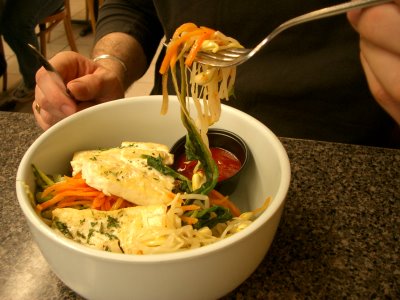 bi bim bap: (comes with miso soup) shredded vegetables marinated in sesame oil & served over steamed rice with spicy bean paste sauce (and tofu, if you want). langsam wird die liste der sicheren kulinarischen häfen länger...